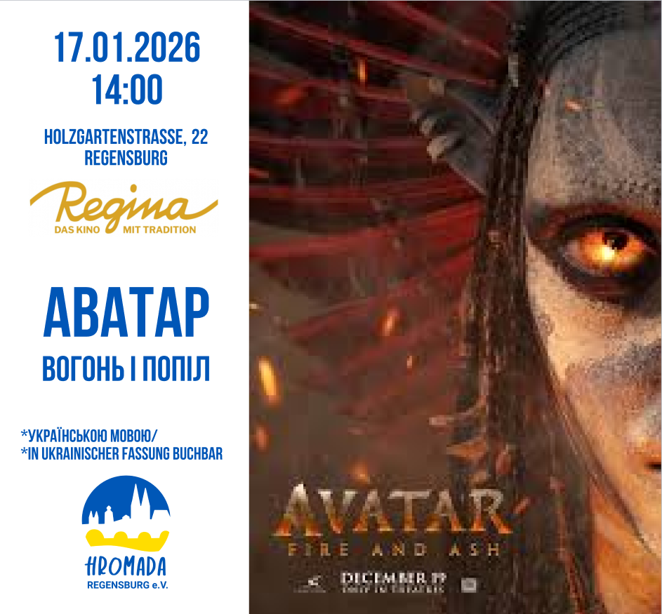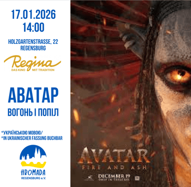 Запрошуємо на показ фільму АВАТАР: ВОГОНЬ І ПОПІЛ українською мовою у кінотеатр Regina у Регенсбурзі