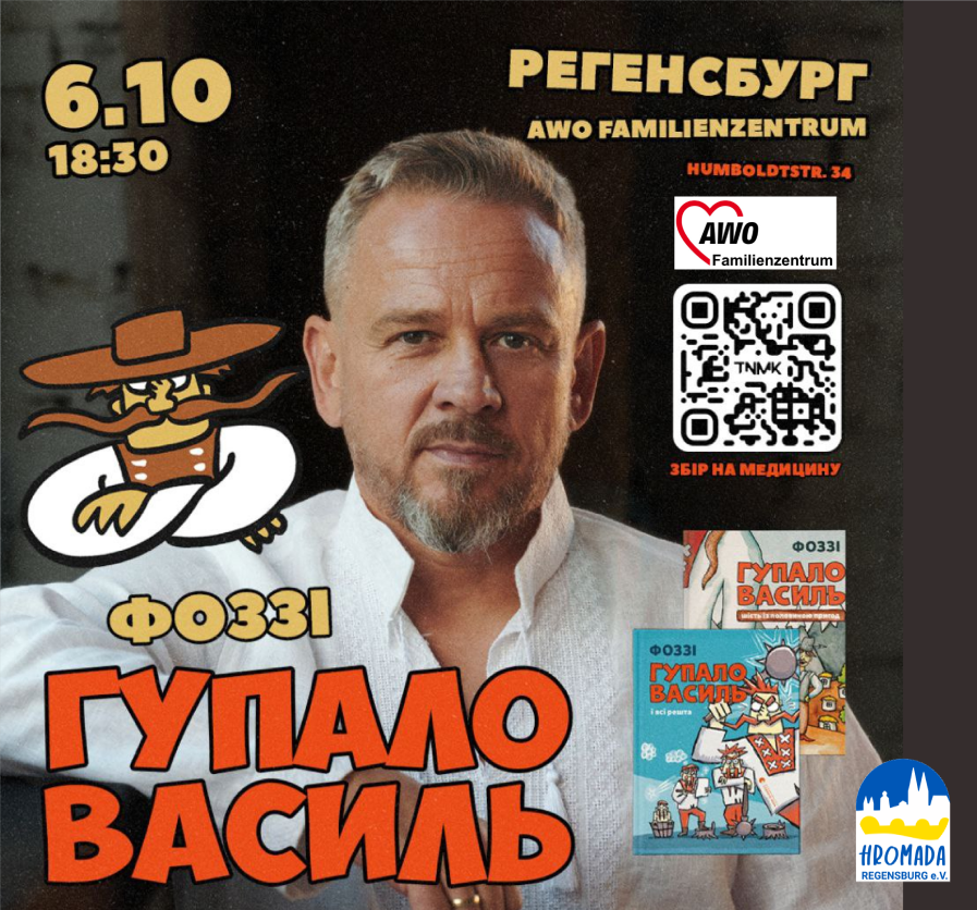 Запрошуємо підтримати збір нашого колеги, Fozzey, відомого вам з гурту ТНМК, який особисто завітає до нас ⏱️ 06.10.2025 о 18:30 📍до AWO Familienzentrum, Humboldtstr. 34, Regensburg Він привезе з собою свої нові дитячі книжки "Гупало Василь", розкаже про мережу "Стрічка", яка поєднує українців закордоном, дасть автографи і поспілкується з вами. Фоззі засновник БФ "Згуртовані", який неодноразово згадувався у групі. Прийходьте та підтримуйте його волонтерський тур донатом.